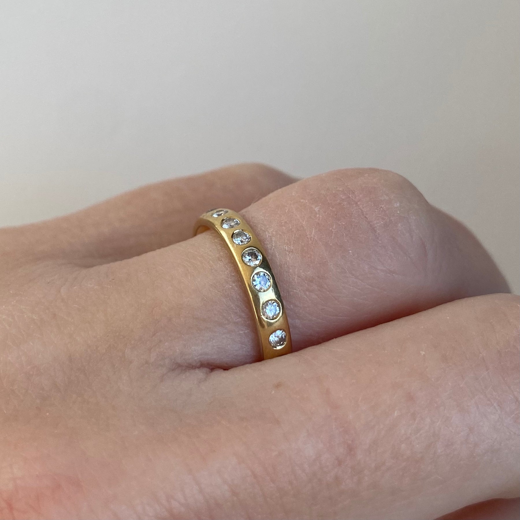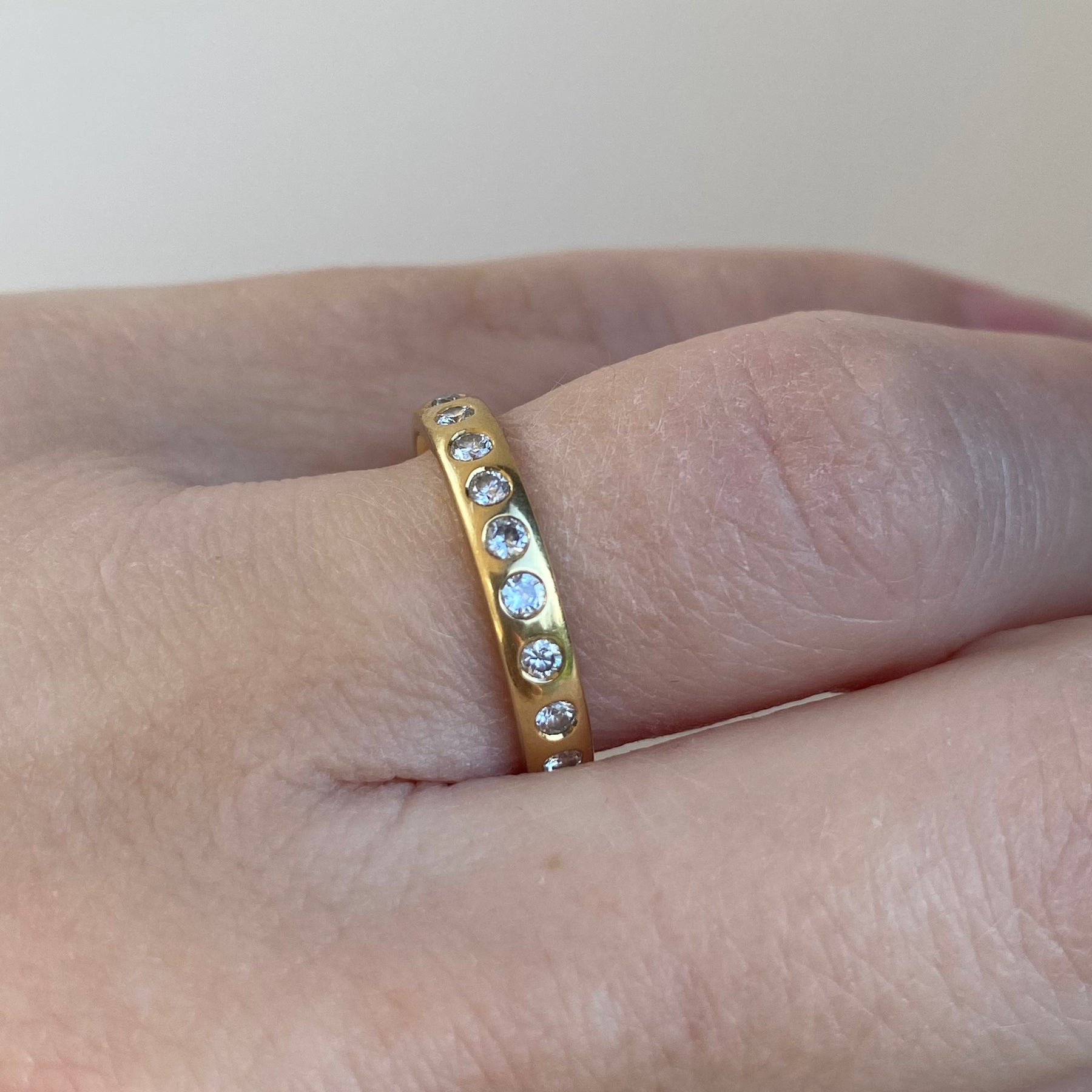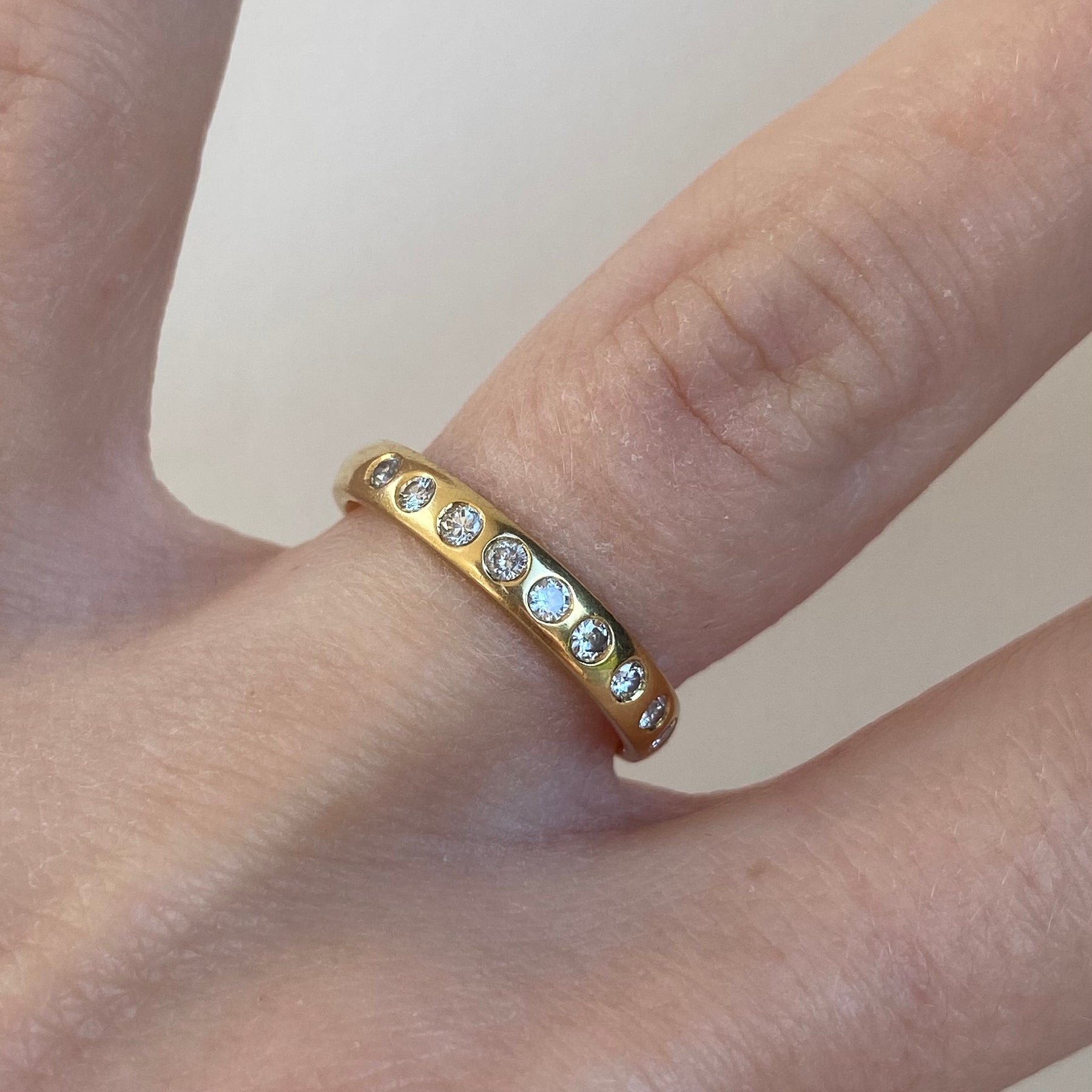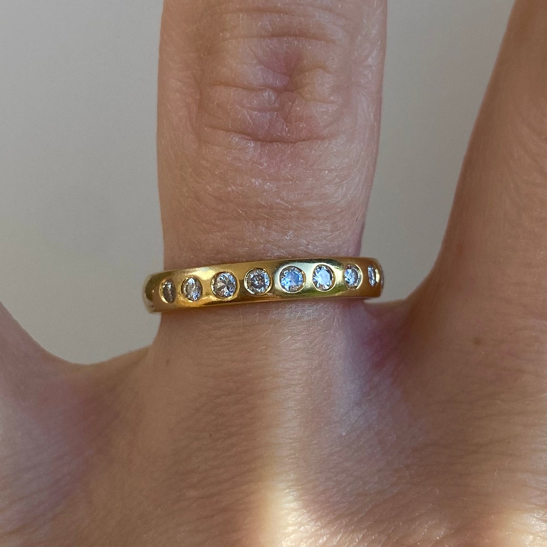 A vintage 18ct gold band set with nine sparkling diamonds, flush-set across the front in a classic étoile design.