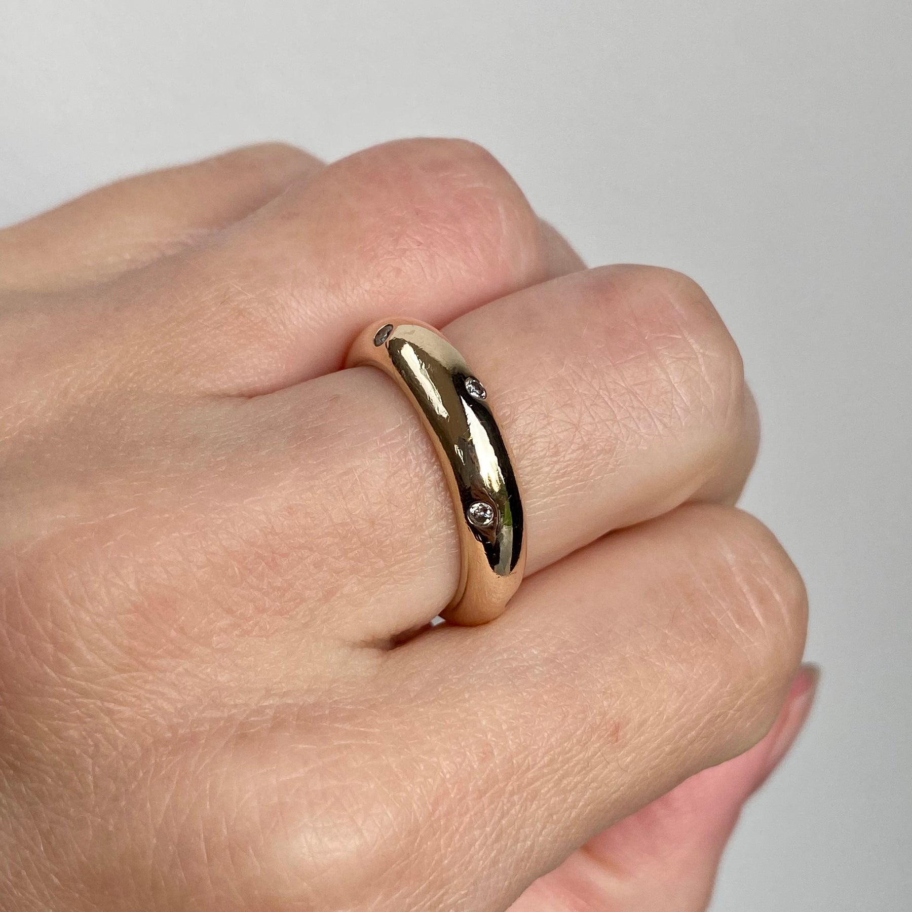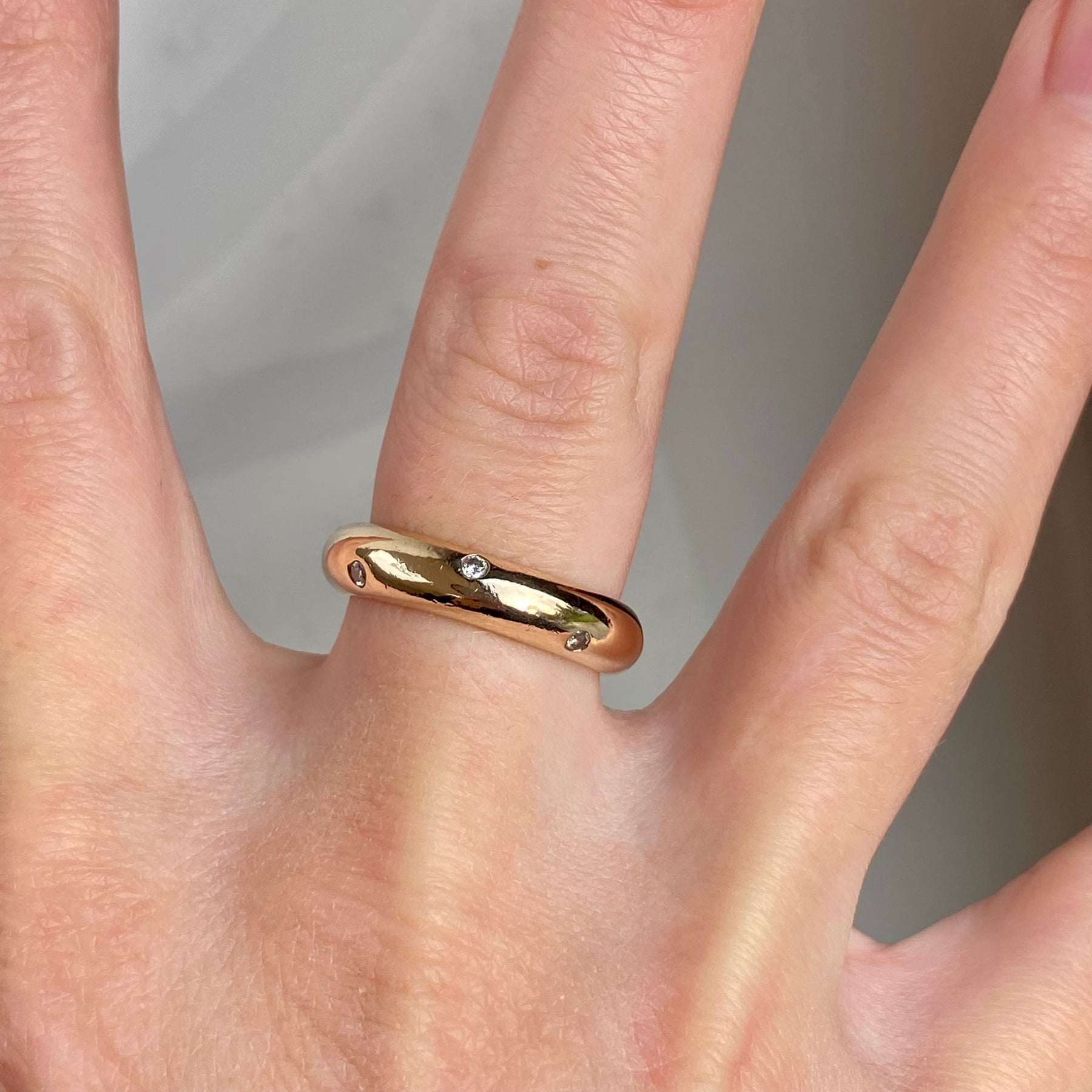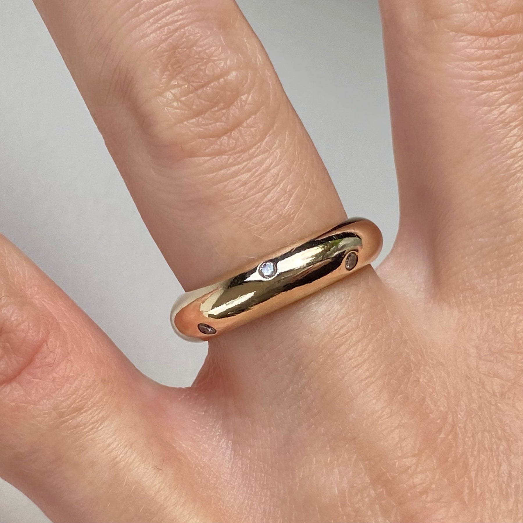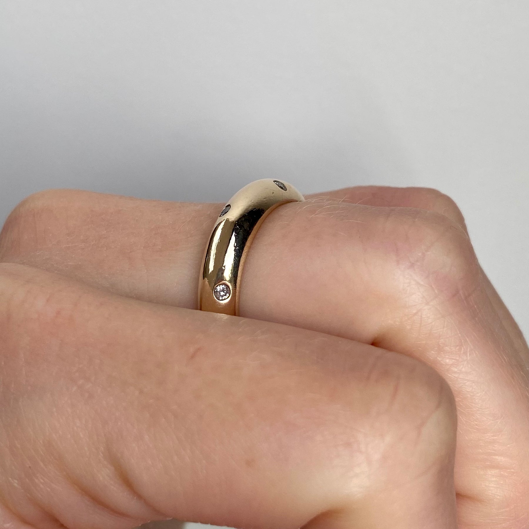 A 9ct gold vintage ring set with scattered diamonds across the full band, with a total diamond weight of 0.20ct.